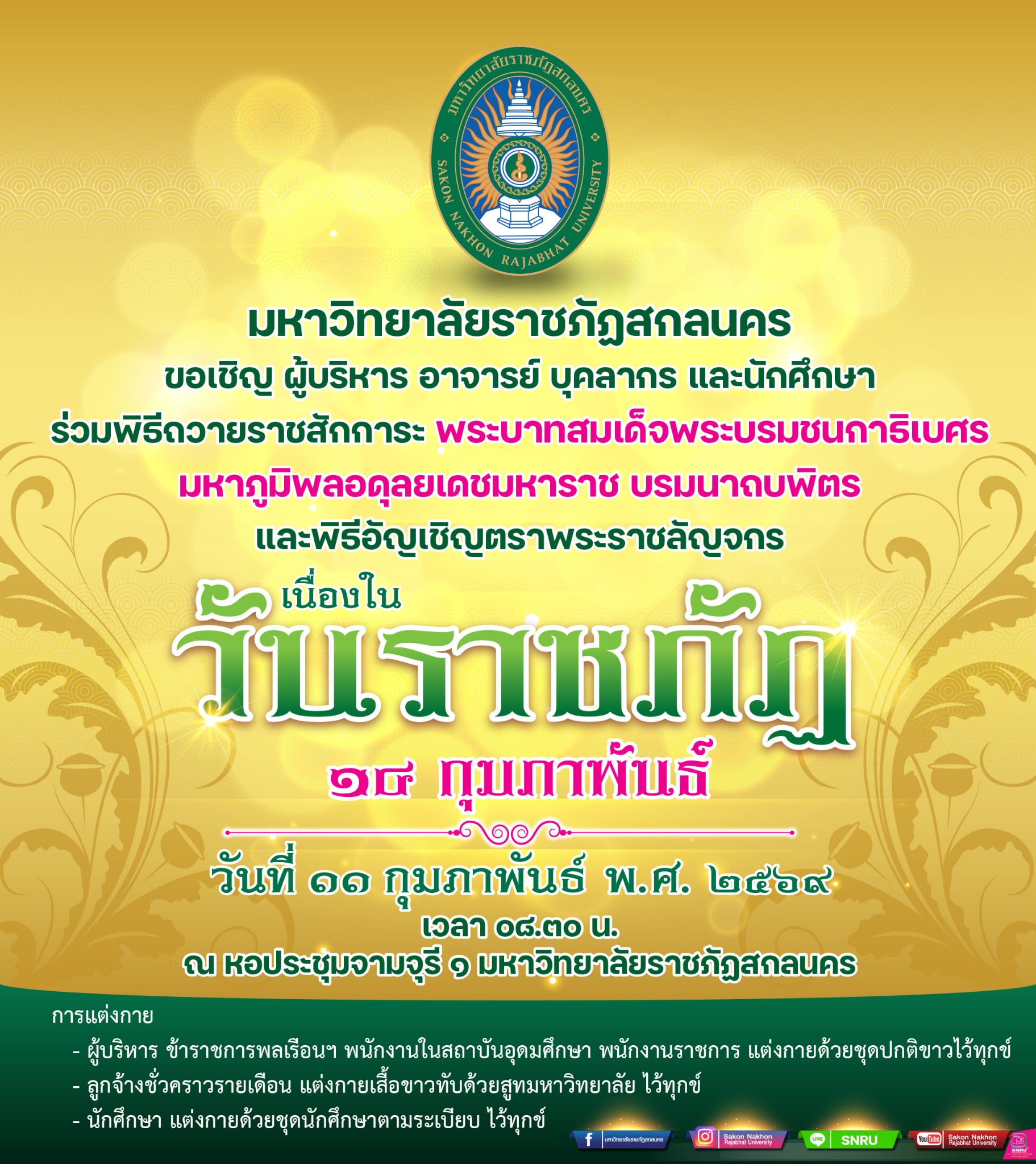 ร่วมพิธีถวายราชสักการะ พระบาทสมเด็จพระบรมชนกาธิเบศร มหาภูมิพลอดุลยเดชมหาราช บรมนาถบพิตร และ พิธีอัญเชิญตราพระราชลัญจกร เนื่องใน “วันราชภัฏ” 14 กุมภาพันธ์