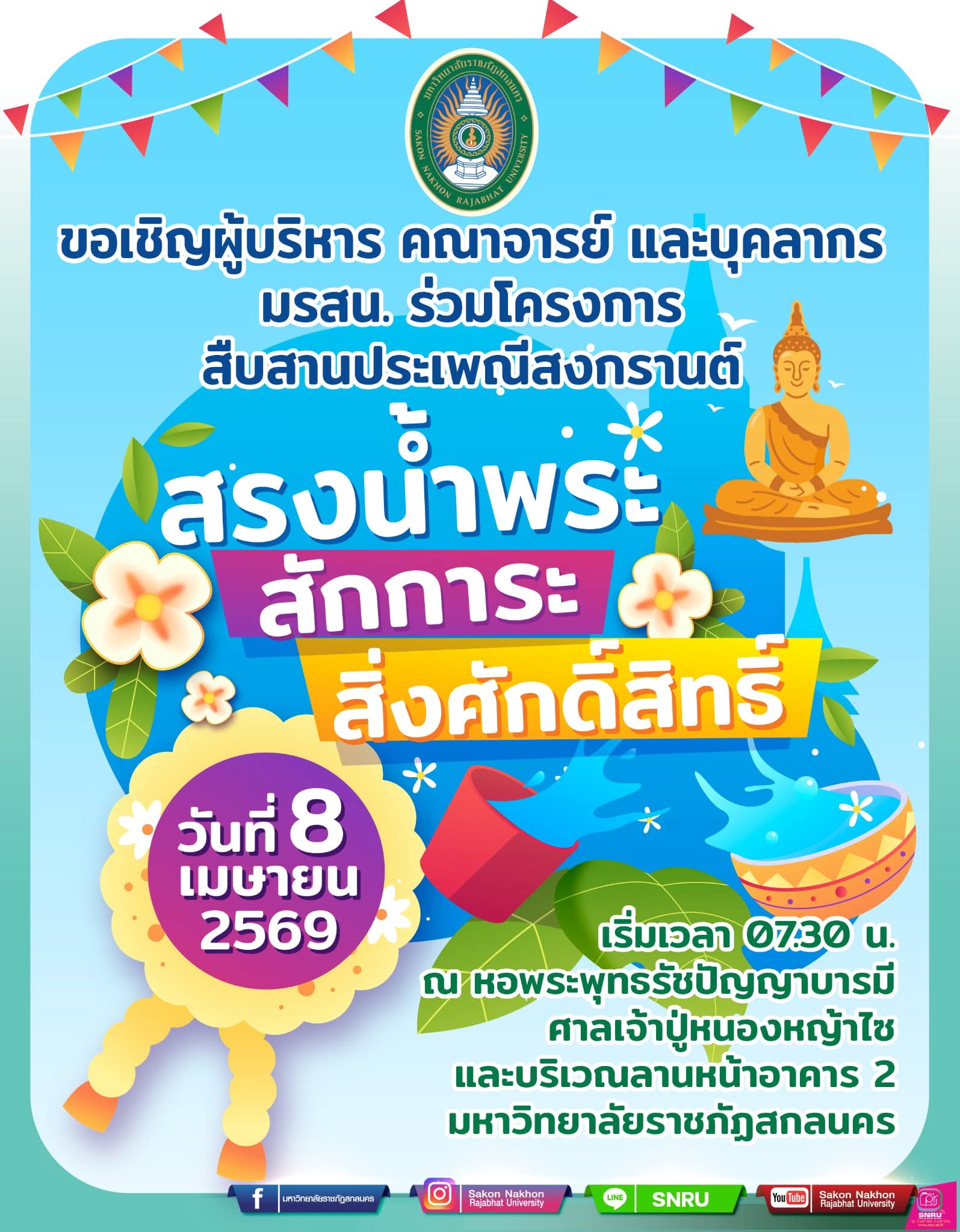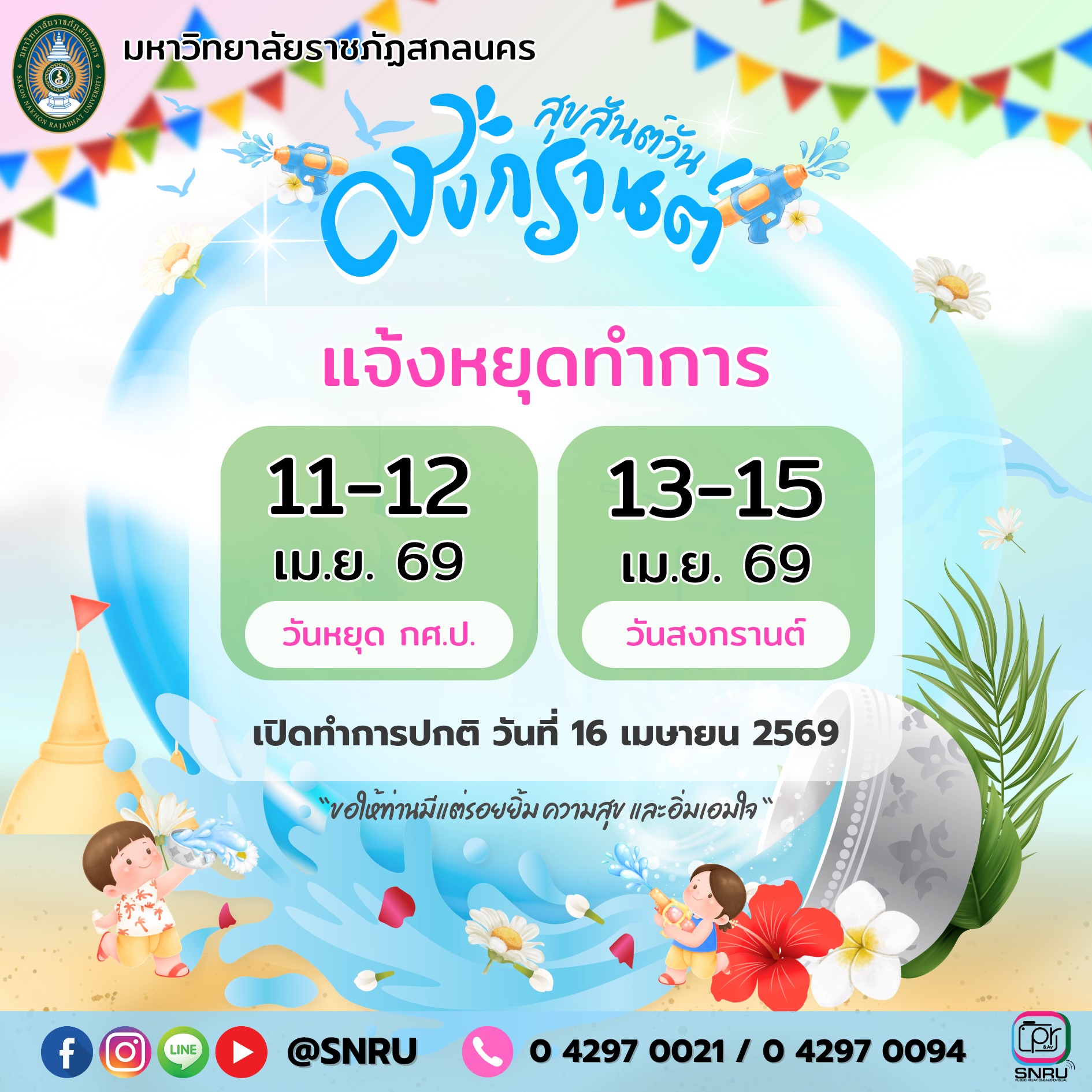 มหาวิทยาลัยราชภัฏสกลนคร แจ้งปิดทำการในวันที่ 11 – 15 เมษายน 2568 และเปิดทำการในวันที่ 16 เมษายน 2568.