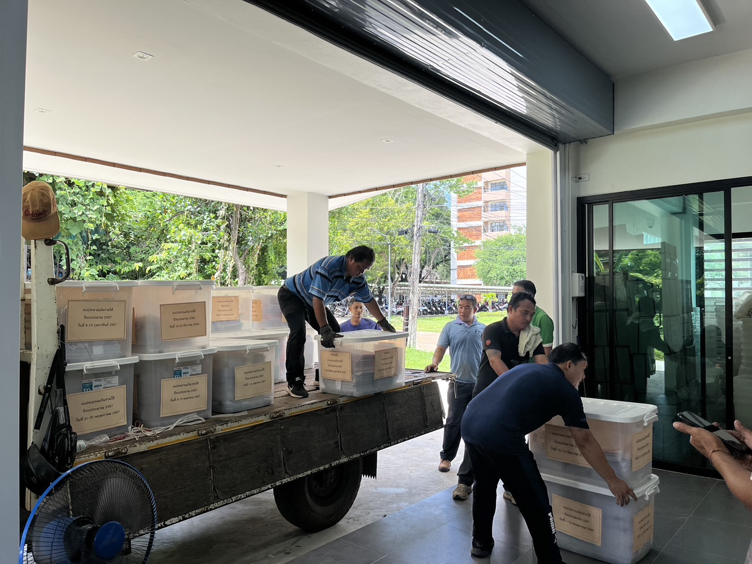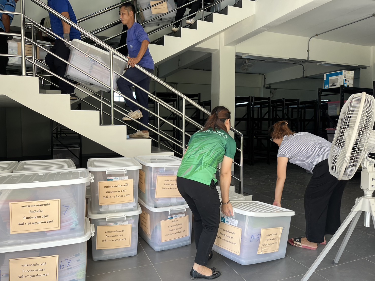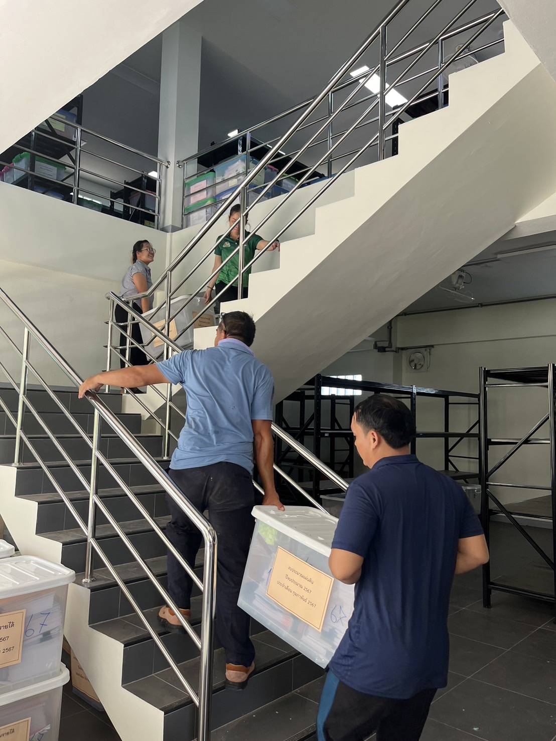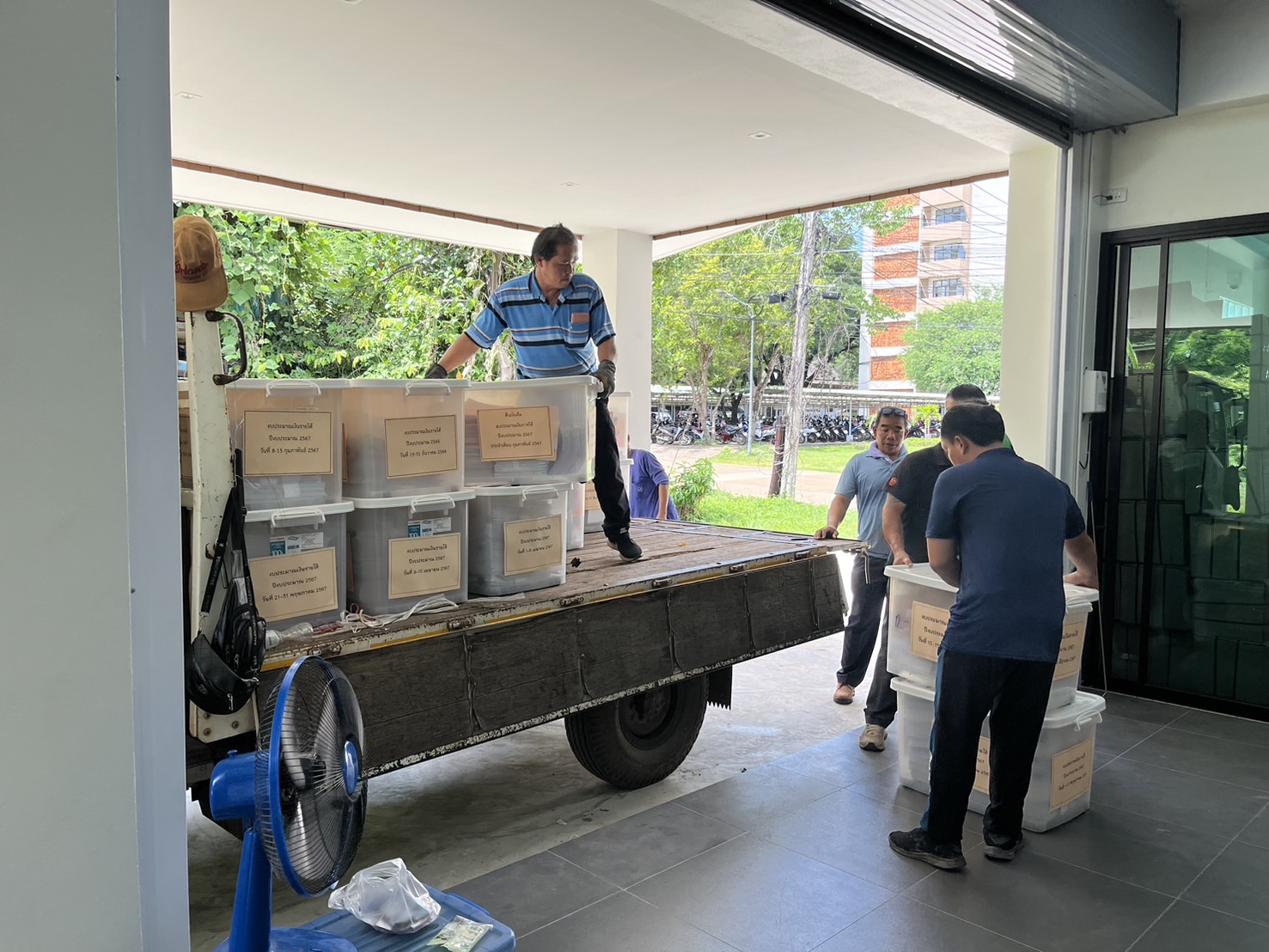 งานคลัง กองกลาง สำนักงานอธิการบดี จึงขอความอนุเคราะห์เจ้าหน้าที่ งานอาคารสถานที่และยานพาหนะ เพื่อดำเนินการขนย้ายกล่องเอกสารการเบิกจ่าย รายงานทางการเงินและเอกสารที่เกี่ยวข้อง จากห้องเก็บเอกสารอาคาร 20 ชั้น 1 ไปยังอาคารบริหารจัดการเอกสารของมหาวิทยาลัย ในวันที่ 5 – 6 และ 9 – 10 กันยายน 2567