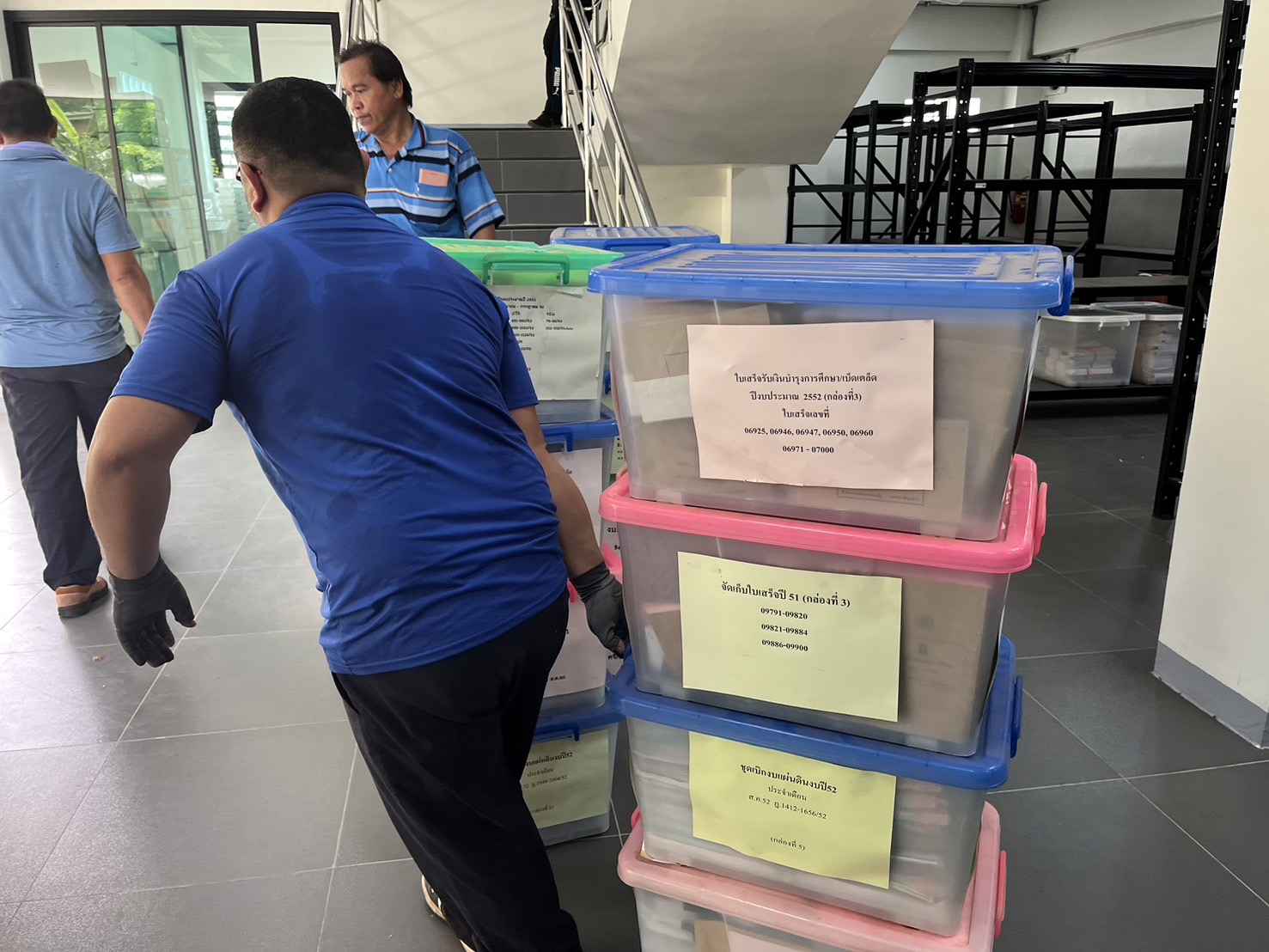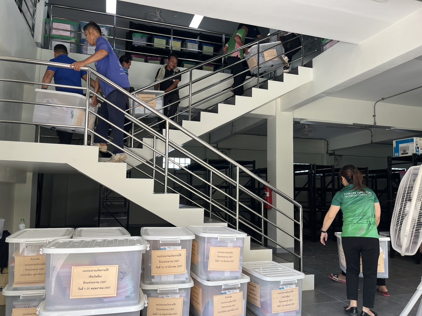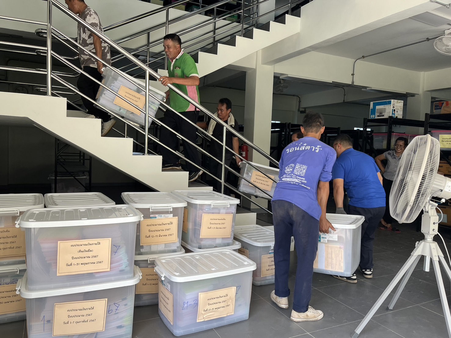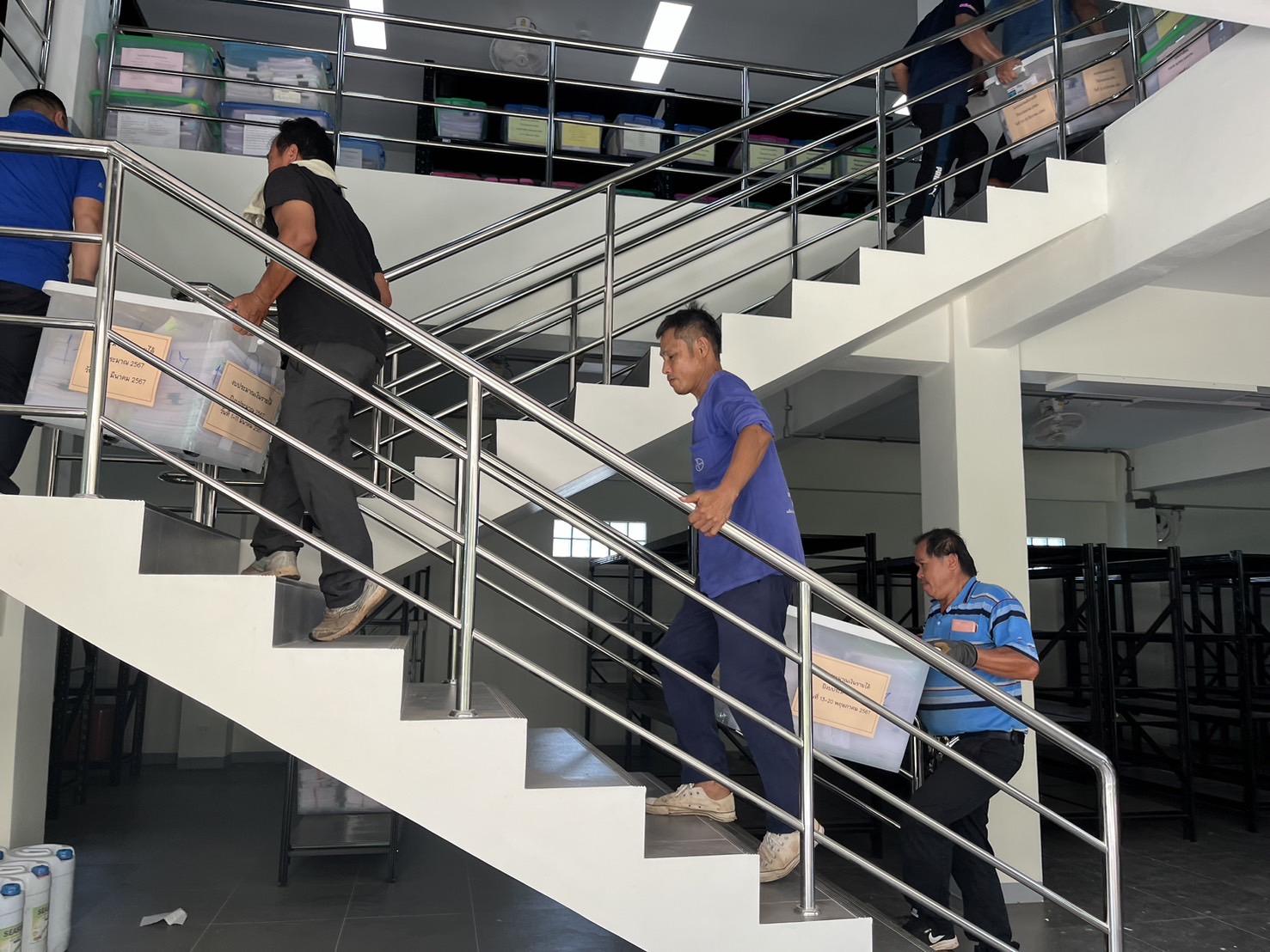 งานคลัง กองกลาง สำนักงานอธิการบดี จึงขอความอนุเคราะห์เจ้าหน้าที่ งานอาคารสถานที่และยานพาหนะ เพื่อดำเนินการขนย้ายกล่องเอกสารการเบิกจ่าย รายงานทางการเงินและเอกสารที่เกี่ยวข้อง จากห้องเก็บเอกสารอาคาร 20 ชั้น 1 ไปยังอาคารบริหารจัดการเอกสารของมหาวิทยาลัย ในวันที่ 5 – 6 และ 9 – 10 กันยายน 2567