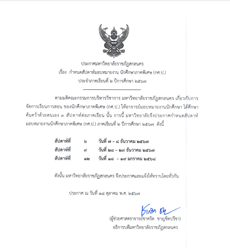 ประกาศ มหาวิทยาลัยราชภัฏสกลนคร เผยเเพร่เมื่อ ธันวาคม 6, 2567ธันวาคม 6, 2024 โดย admin 597 เข้าชม ประกาศ มหาวิทยาลัยราชภัฏสกลนคร เรื่อง กำหนดสัปดาห์มอบหมายงาน นักศึกษาภาคพิเศษ (กศ.ป.) ประจำภาคเรียนที่ 2 ปีการศึกษา 2567 เข้าชม : 543 FacebookFacebookXXLINELine